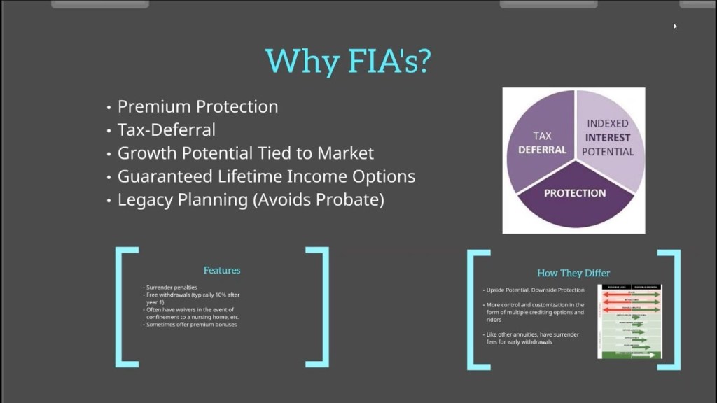What are Fixed Index Annuities (FIA)? FIAs are insurance products that offer a unique combination of growth potential and downside protection. They provide you with the opportunity to participate in the potential growth of the stock market while protecting your principal from market downturns. This makes FIAs an attractive option for individuals who want to grow their money without the risk of losing it.