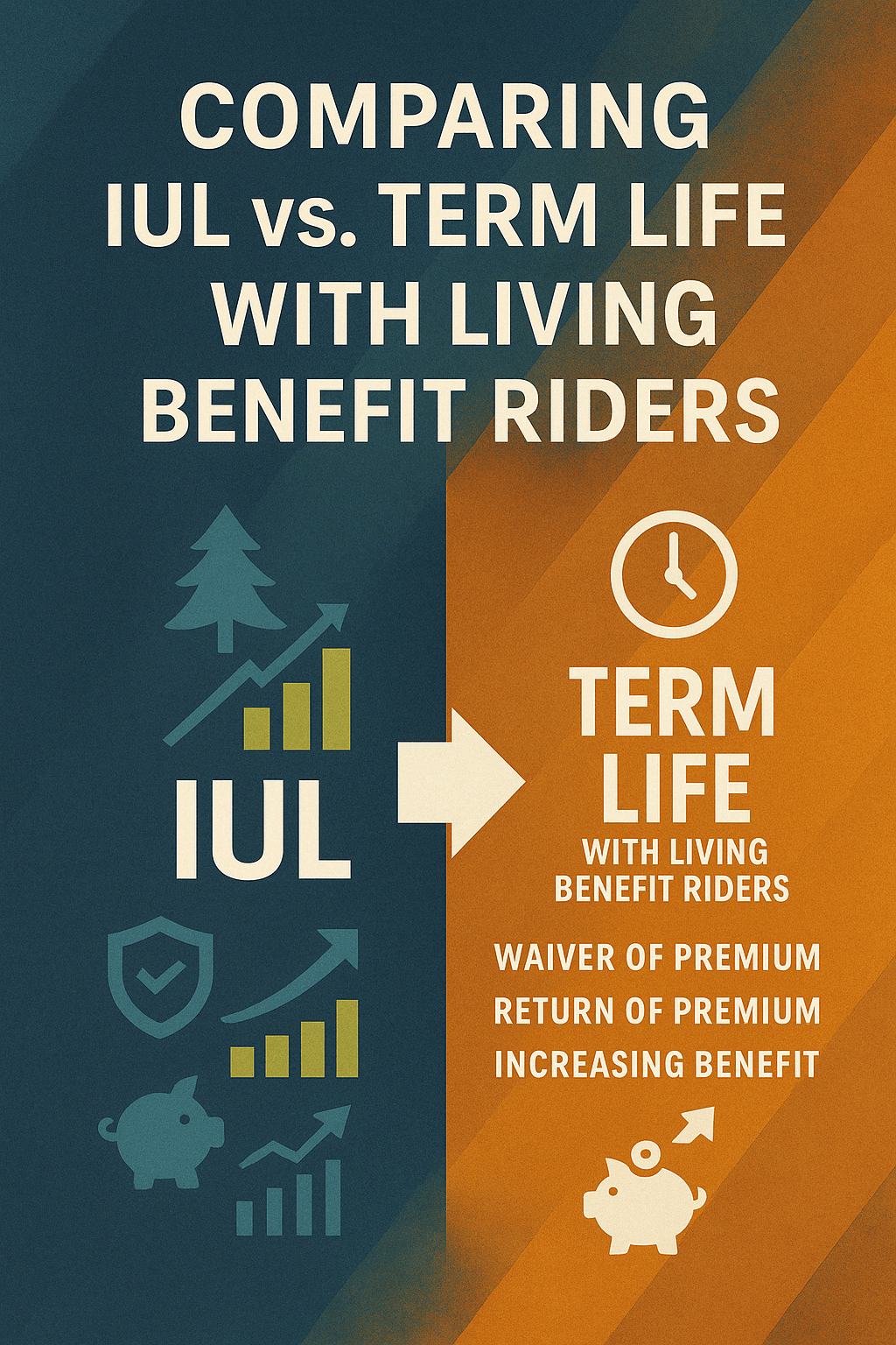 In the world of life insurance, choosing the right policy is crucial in protecting your loved ones and aligning your financial goals. Two popular approaches are Indexed Universal Life (IUL) insurance and Term Life insurance with Living Benefit Riders. This article examines these options while incorporating valuable riders such as waiver of premium, return of premium, and increasing benefit riders. We’ll also discuss how investing the savings from a term policy into a retirement Fixed Indexed Annuity (FIA) can be an effective strategy for long-term wealth accumulation.